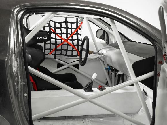 Bộ khung sườn thể thao chống lật cũng được gắn vào bên trong xe, đảm bảo an toàn cho người lái. Không gian dưới nắp capo trở nên rộng rãi, chỉ với bình ác quy điện.