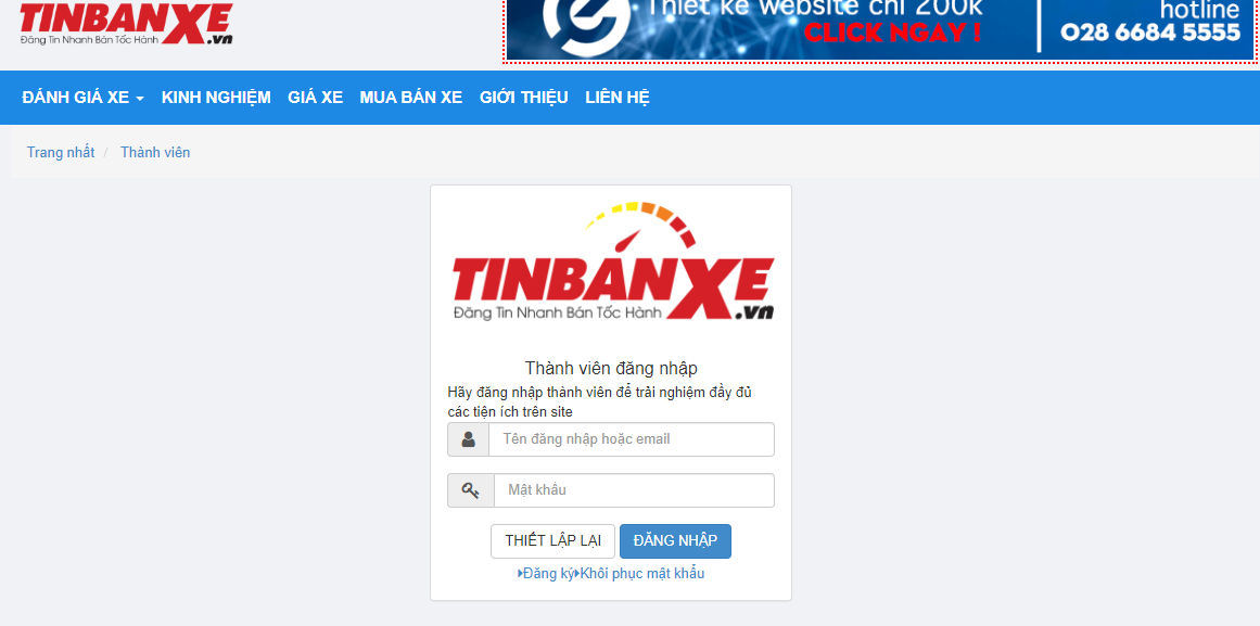 Giao diện sàn giao dịch mua bán xe trên Tinbanxe.vn được thiết kế chi tiết, dễ sử dụng