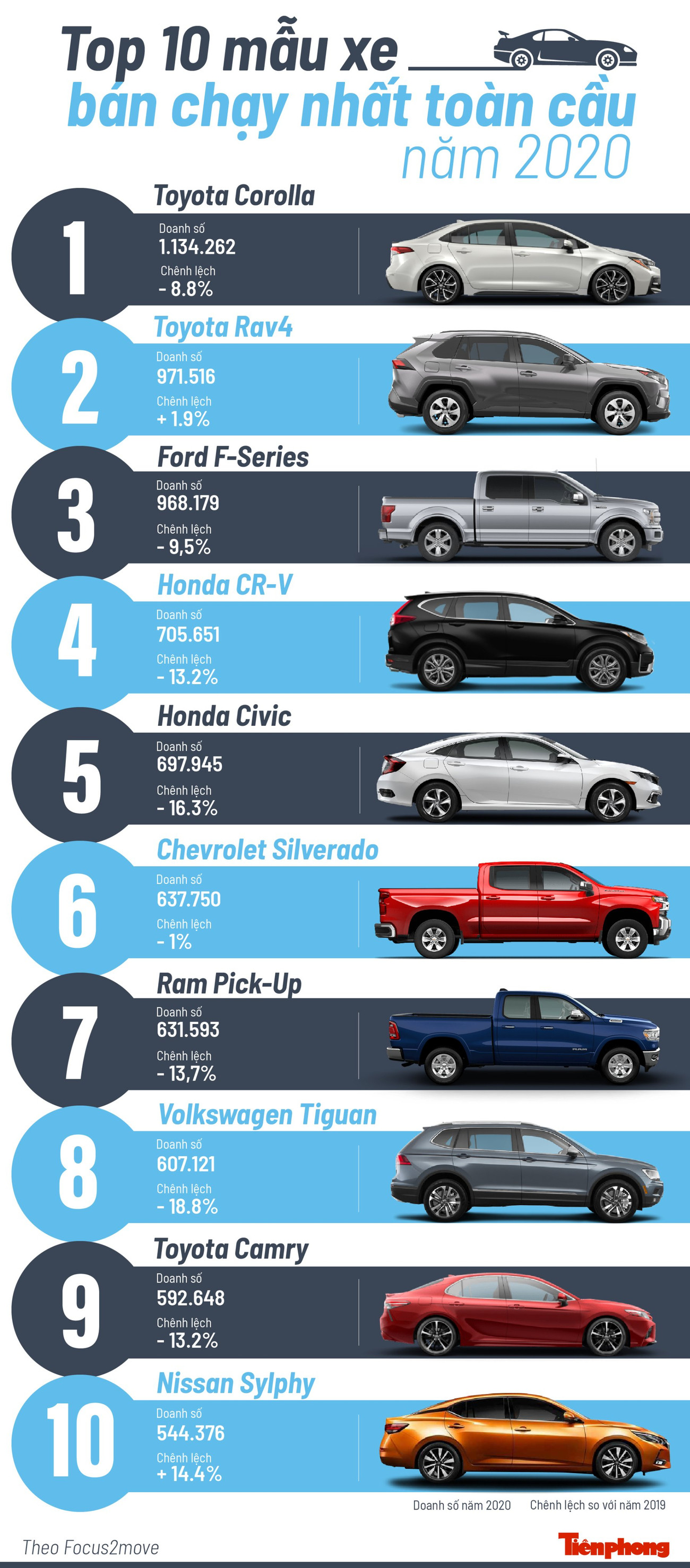 Top 10 mẫu xe bán chạy nhất toàn cầu năm 2020