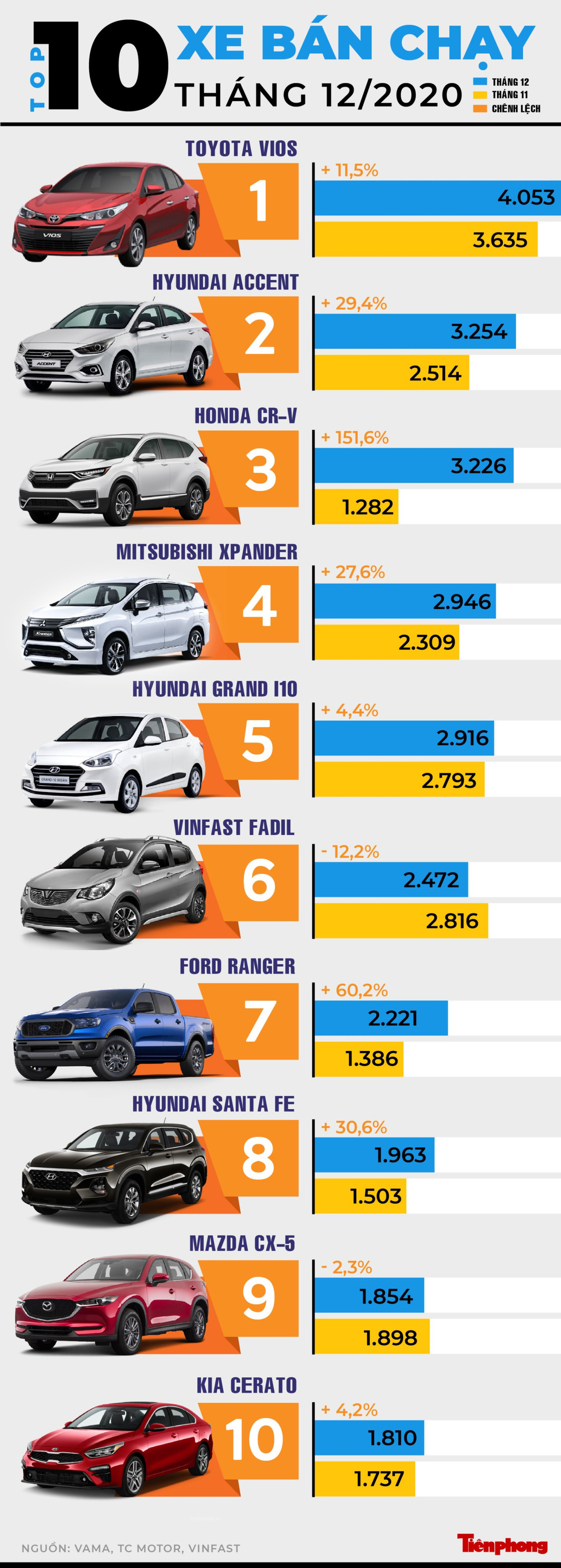 Top 10 mẫu xe hút khách nhất tháng 12