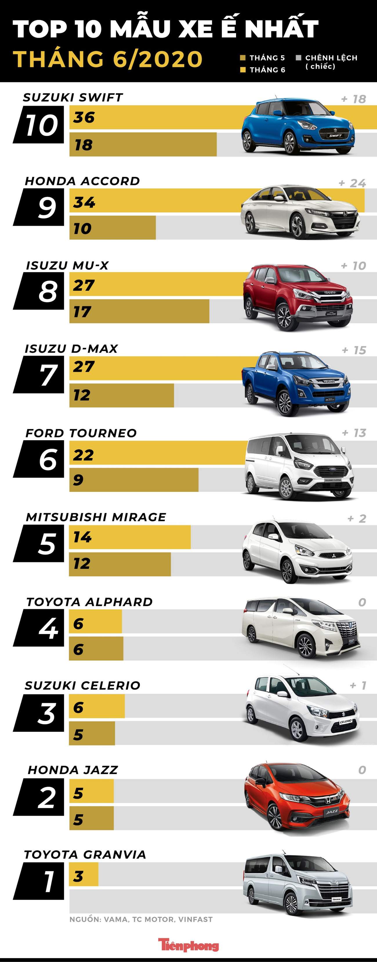 TPO - Tháng 6 chứng kiến sự xuất hiện của gương mặt mới - Toyota Granvia - bắt đầu bán ra tại thị trường Việt Nam và mẫu xe này đã gây chú ý bằng việc dẫn đầu danh sách top 10 mẫu xe bán chậm nhất.