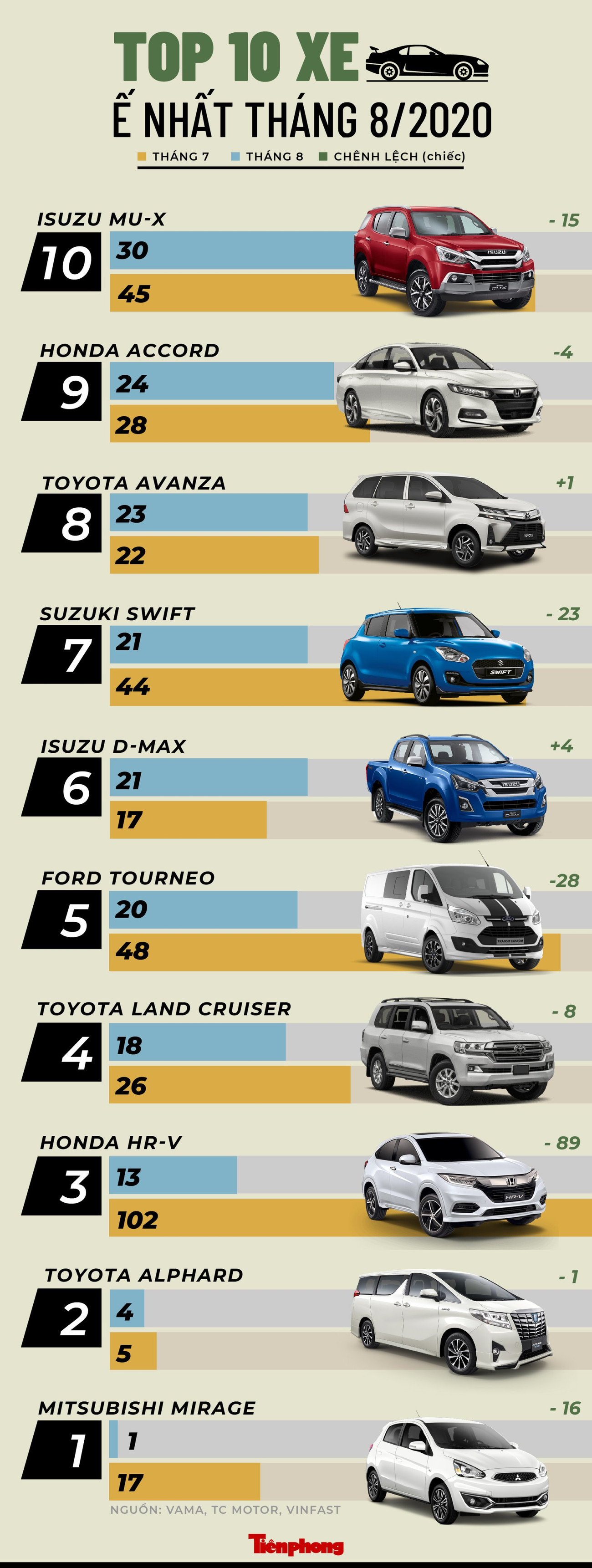 Google News Top 10 ôtô bán chậm nhất tháng 8 tại Việt Nam