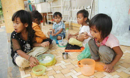 | Các em tụ tập ăn trưa tại trường.. |