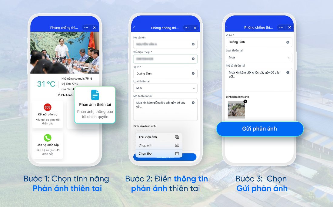 Với tính năng này, các thông tin phản ánh từ người dân sẽ giúp chính quyền và cơ quan chức năng nhanh chóng có phương án ứng phó hoặc khắc phục hậu quả do thiên tai xảy ra, đảm bảo sự an toàn cho đời sống của người dân.
